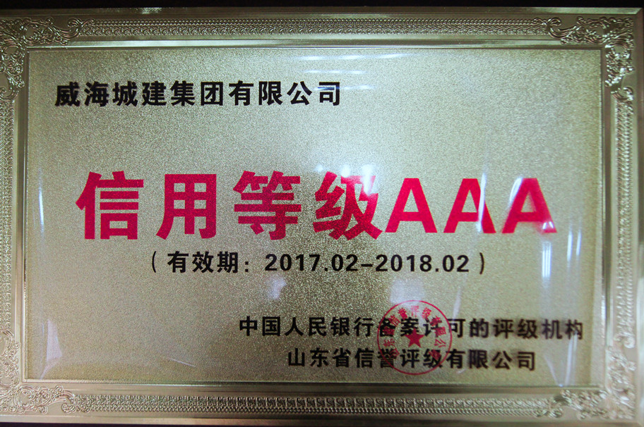 證書(shū)名稱:信用等級(jí)AAA企業(yè) 獲證單位:威海城建集團(tuán)有限公司 發(fā)證單位:山東省信譽(yù)評(píng)級(jí)有限公司