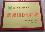 成果名稱:威海市優(yōu)秀住宅小區(qū)培育項(xiàng)目 獲獎(jiǎng)單位:城建·新苑陽(yáng)光 頒發(fā)單位:威海市房地產(chǎn)業(yè)協(xié)會(huì)