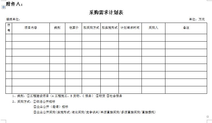 (一)需求部門(單位)應(yīng)按照要求及時(shí)提報(bào)年度、季度采購(gòu)需求計(jì)劃表。其中: