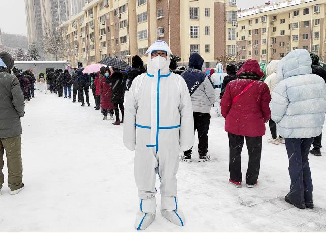 漫天風(fēng)雪,氣溫低至零下,依然擋不住廣大志愿者抗疫的腳步。11月30日以來,集團(tuán)黨員干部職工全力以赴投身在抗疫第一線,在抗疫戰(zhàn)場(chǎng)上“連軸轉(zhuǎn)”。有的干部職工雖然不是黨員,卻在關(guān)鍵時(shí)刻沖鋒陷陣,第一時(shí)間到社區(qū)報(bào)到,支援抗疫工作。有的黨員從12月1日晚上8點(diǎn)就開始在社區(qū)卡口執(zhí)勤,一直干到次日凌晨1點(diǎn),寒風(fēng)刺骨卻無怨無悔。有的黨員老公在單位值守,自己一個(gè)人在家照顧孩子,為了支援社區(qū)疫情防控,早上5點(diǎn)就把孩子叫醒讓對(duì)門鄰居幫忙照看,義