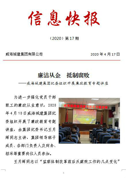 威海城建集團(tuán)全力做好新型冠狀病毒感染的肺炎疫情防控工作
