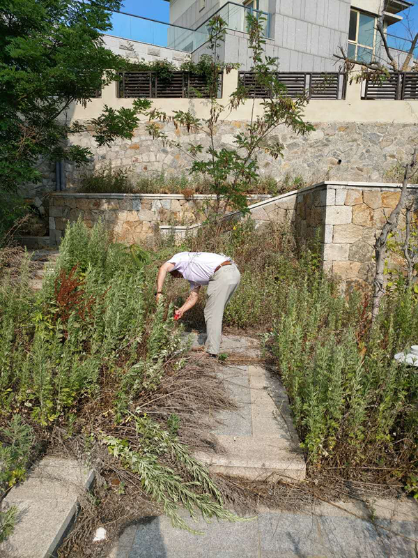 前幾天,物管中心去查看一處轉(zhuǎn)交過來的資產(chǎn),一進院子,雜草叢生。唐建民一邊說著:“這哪像一戶人家。”一邊從車上拿出一只剪冬青的剪刀,就冒著烈日收拾起雜草來。